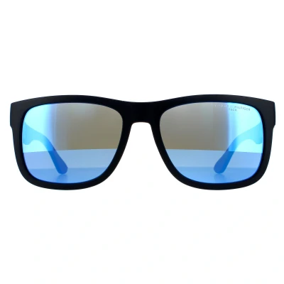 Tommy Hilfiger Rectangle Mens Matte Blue Blue Mirror Sunglasses Tommy Hilfiger have a simple rectangular shape with minimalist design on a classic shape. The Tommy Hilfiger colours appear at the temples for a classy colour finish.