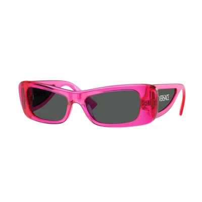 Sunglasses Versace VE4481, are distinguished by their soft shape, with an injected frame that offers comfort and style. The pink color is perfectly combined with gray lenses, for a relaxed but sophisticated look. Recommended for square and rectangular faces, as they soften the sections. Ideal for women.
