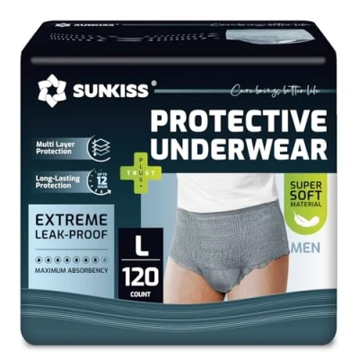 SUNKISS Incontinence Pants for Men, Daytime Disposable Adult Pull Ups, Mens Protective Underwear with Maximum Absorbency, Grey, Large, 120 Count (4 Packs of 30)
