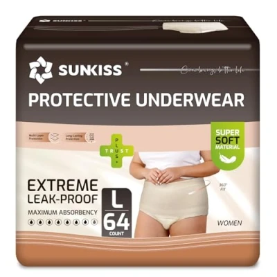 SUNKISS Incontinence Pants Women, Daytime Disposable Postpartum Underwear, UK Size 14 18, Protective Maternity Pull Ups, Beige, Large, 64 Count (4 Packs of 16)
