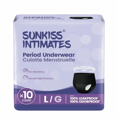 JoybuySUNKISS INTIMATES Series Pull-Up Pants Black L are ultra-soft, high-absorbency period underwear featuring a dual-core design with FSC-certified pulp, offering up to 12 hours of leak-proof protection and a comfortable, invisible fit—perfect for heavy flow, overnight, postpartum, and active use. Machine washable for easy maintenance.