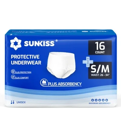 SUNKISS TrustPlus Incontinence and Postpartum Underwear for Men Women, Disposable Protective with Maximum Absorbency, Odor Control, Small/Medium, 16 Count