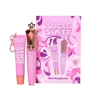 COMPLETE LIP DUO: Sunkissed Sugar Sweet set includes a high-shine Blue Raspberry Lip Gloss and nourishing Lip Conditioner for the ultimate lip care combination BLUE RASPBERRY SCENT: Both products feature a delightful hint of Blue Raspberry fragrance in buttery, lightweight textures that glide smoothly onto lips GLOSSY RADIANCE & HYDRATION: Lip gloss delivers vibrant, high-shine finish whilst the conditioner provides deep moisture and nourishment for soft, healthy-looking lips VEGAN & PETA APPROVED: Cruelty-free formula suitable for conscious beauty lovers, certified by PETA for ethical production standards GIFT-READY PACKAGING: Presented in eye-catching fruit juice inspired packaging with playful Sugar Sweet branding, perfect for gifting or treating yourself