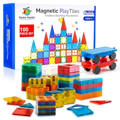 【THE ULTIMATE COLLECTION FOR FIRST-TIMERS!】This set is perfect for kids who have never tried magnetic tiles/blocks but will get plenty of use out of them once they get started. The set contains 100 magnetic tiles in various shapes and 2 cars which is the perfect combination for building all of the most popular models and much more. It will occupy your kids for hours and bring them so much joy. Magnetic Play Tiles come with a full 5-year warranty! 【PRESCHOOL CREATIVE EDUCATIONAL STEM TOY】Magnetic Play Tiles is an exceptional toy for promoting child development. It helps kids build and strengthen their color and shape recognition abilities, creative thinking, creative problem solving, use of imagination, and much more, all while having fun. It is an excellent toy for parent-child bonding, playing with other kids, or independent play. 【GREAT GIFT FOR A BIRTHDAY, HOLIDAY, OR ANY OCCASION】Magnetic Play Tiles are the perfect gift that any kid will love for years to come! They’re bright, colorful, and rewarding to create with. Watch your kid’s self-esteem soar as they successfully build a house, castle, rocket, or other models in the booklet, as well as designs from their own creative minds. The possibilities are endless! Great gift/toy for+3 year old boys & girls. Suitable for ages 3 to 8 【SAFE PLAY】 Our Magnetic Tiles are made from high-quality, non-toxic, and BPA-free ABS plastic. The tiles’ edges are rounded and safe for kids to handle. The size of the tiles is suitable for small hands and kids can deal with them easily. Our product has passed an ASTM standard lab test and was found suitable for both kids and toddlers. 【A TOY THAT BOTH KIDS AND PARENTS WILL LOVE】The set includes 100 magnetic tiles, 2 cars and a specially-designed guide booklet. The tiles are well-made, durable and sturdy, and have strong magnets. Magnetic Play Tiles are a good toy to keep kids occupied in and out of the house or even on road trips and vacations. It is a toy that both kids and parents will love as it incorporates plenty of creativity and imagination!, Manufacturer: Sunny Auntie