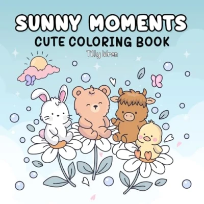 Sunny Moments: Summer Coloring Book For Adults and Teens, Bold Easy Designs Featuring Cute Animal Friends Stress Relief Relaxation