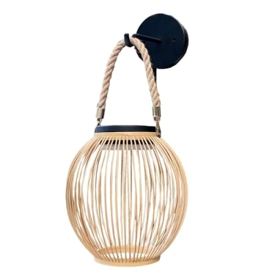 Sunny Small Round Wireless Solar LED Wall Light in Bamboo Bohemian Style ISALINE H40cm