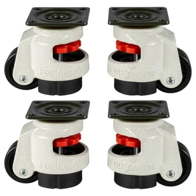 AmazonMassive Load Capacity These levelling caster wheels support up to 3000 kg, making them ideal for extremely heavy machinery, industrial equipment, and welded workbenches — highly reliable under large loads. 360° Swivel Mobility Each caster features a full swivel design, allowing 360° rotation for smooth manoeuvrability. Move heavy items easily and adjust direction with minimal effort. Durable Steel Built with high-strength steel plate mounting, these casters provide a stable and robust foundation. The steel construction resists wear and offers excellent rigidity. Levelling Functionality The includes a levelling mechanism, so once positioned, you can lock in exact height and ensure your equipment stays stable, reducing vibration and wobble. Versatile Industrial Use Perfect for a wide range of applications — from heavy machinery and welding tables to automation equipment and large workbenches. These casters offer flexibility, strength, and reliability.