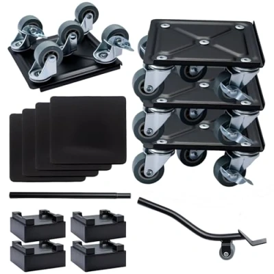 [Effortless Single-Person Furniture Moving] Furniture sliders easily move heavy sofas, beds, and cabinets! These innovative furniture sliders act like levers, reducing friction and allowing you to smoothly slide heavy objects across the floor without strenuous bending or scratching. [360° Rotating Anti-Slip Mats] Furniture moving wheels are made of high-strength engineering plastic with a special low-friction base, lifting furniture up to 2 inches high and supporting up to 150 kg. Four 360° rotating casters provide flexible movement. Rubber protective pads won't scratch furniture. Suitable for sofas, cabinets, refrigerators, beds, piano tables, bookcases, washing machines, and more. It works on various smooth surfaces (such as tile, wood flooring, etc.), but is not recommended for use on long-pile carpets. [Suitable for All Floor Types] Washing machine mover works on all types of floors! The smooth base easily glides across hardwood, laminate, tile, and vinyl floors. The unique grooved design also grips carpet perfectly, allowing you to easily move heavy furniture on hard floors and carpets. [Ergonomic Handles for Maximum Leverage] Unlike traditional flat slides, our furniture movers feature built-in ergonomic handles. This provides a more secure grip and more precise control, allowing you to lift and slide furniture simultaneously with minimal effort, making rearranging furniture easy and safe. [Four-Piece Set for Comprehensive Furniture Protection] This complete furniture mover set includes four sturdy and durable movers, allowing you to protect and move multiple pieces of furniture at once. Their striking red color makes them easy to spot when stored, ready for your next home tidying session.