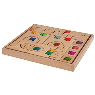 High-quality beech wooden construction kit with 37 parts 15 transparent colourful acrylic cubes and 22 wooden blocks Building with light effect, Manufacturer: SUNNYSUE