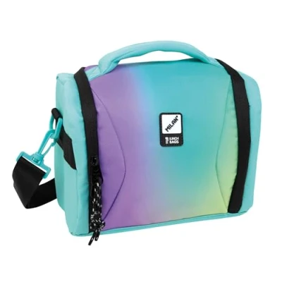 Large capacity isothermal food bag. Sunset Series Green A combination of gradient colors inspired by the sunset, accompanied by black and white details. Zipper pulls with rope. Thermal insulating interior (cold/heat) for better food preservation. Full opening for better accessibility and cleaning. Adjustable and removable strap. Ripstop outer fabric: lightweight and resistant to breakage and tears. It uses a special technique that weaves thick reinforcement threads at regular intervals in a crisscross pattern. Fabric composition: polyester outer and insulated inner lining (P.E.V.A.). Measurements: 24.5 x 20 x 16 cm. Capacity: 5 liters.