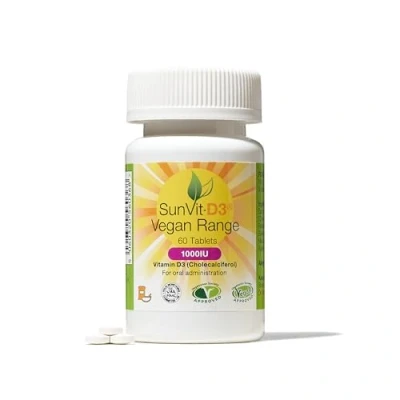 Sunvit D3 Vegan Lichen Vitamin 1000 IU Tablets Keep Teeth & Bones Strong Supports Muscle Healthy Boost Immune System 60 Daily