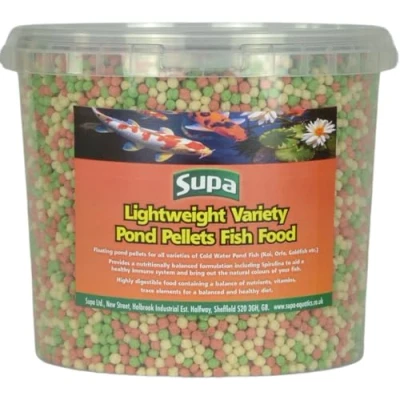 Supa Lightweight Variety Pond Pellets 360 grams as the name suggests, are a pelletised form of food which are highly efficient in delivering nutrients to the fish. A complete pond food for all types of pond fish Contains a balance of nutrients, vitamins, and trace elements for a balanced and healthy diet. The food is highly digestible resulting in low water pollution and better water quality. Comes in resealable bucket to keep the pond food fresh