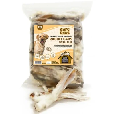 Supa Paws 500g Rabbit Ears with Fur for Dogs (28 35 Hairy Ears) 100% Natural Raw Dog Treat Hypoallergenic Pet Treats Puppy Senior Chews Healthy Digestive Grain Gluten Free Snacks Food