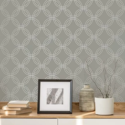 WallpaperDirectBring a pleasing geometric design to your interior, featuring circles interlinking with each other creating the sense of movement on your walls. Shown here in the grey colourway - other colourways available. Please note actual pattern repeat is 32cm.