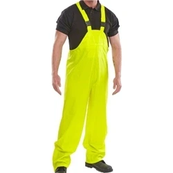 EurofficePolyester with PU coated bib and brace set. Adjustable elasticated braces with quick release buckles. Internal bib pocket with zipped entry. Side waist expansion for easy wear.