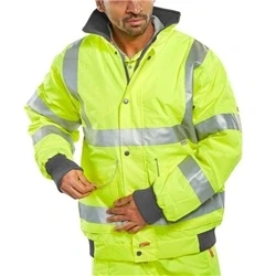 300 Denier Heavyweight polyester with PU coating. Two-way heavy duty zip front with storm flap. Fleece lined collar. 2 lower bellows pockets with flaps. Security and phone pockets. Rear hem access for ease of logo applications. Knitted storm cuffs. Concealed Hood. Retro-Reflective tape. Conforms to EN ISO 20471 Class 3 Conforms to EN343 Class 3 Resistance to Water Penetration Class 1 Air Permeability