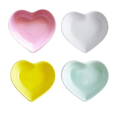 Super Cute Heart Sharpe Ceramic Sauce Dish,Mini Side Seasoning Dish,Condiment Dishes/Sushi Soy Dipping Bowl,Snack Serving Dishes,Love Porcelain Small Saucer Set(Set of 4) (4 Color)