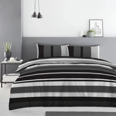 PREMIUM POLYCOTTON FABRIC: Crafted from a soft and durable blend of (70 % polyester and 30 % cotton), this bedding set offers the perfect balance of breathability, comfort, and easy maintenance for year-round use. EYE-CATCHING DESIGN: Features a stylish and modern pattern that adds a touch of elegance and charm to any bedroom décor, this bedding set features vibrant colors and contemporary patterns instantly uplifting the look of your space. PERFECTLY SIZED: Includes 1 fitted sheet (152x203 + 25cm), 1 duvet cover (230x220cm), and 2 pillowcases (50x75cm), tailored to fit standard UK king size beds with a smooth and secure finish. BREATHABLE & ALL-SEASON COMFORT: The lightweight polycotton material promotes airflow to keep you cool in summer and cozy in winter, making it a versatile choice for year-round use. CARE INSTRUCTIONS: Machine washable at 40C. Tumble dry at low temperature. Do not dry clean. iron at low temperature. Do not bleach. Steam ironing may be a risk.