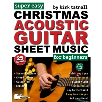 Super Easy Christmas Acoustic Guitar Sheet Music for Beginners: TAB 25 Popular Carols—Plus! Chord Charts, Strum Patterns and FREE Audio (Large Print Letter Notes Music)