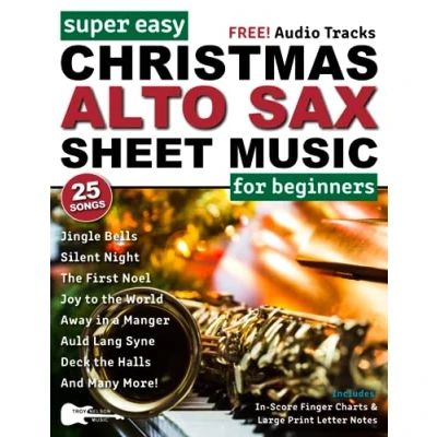 Super Easy Christmas Alto Sax Sheet Music for Beginners: 25 Popular Carols with Big Letter Notes, In Score Finger Charts + FREE Audio! (Large Print Notes Music)