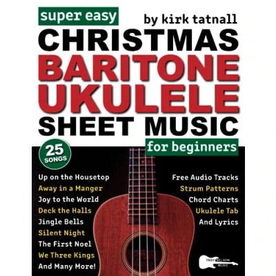 Super Easy Christmas Baritone Ukulele Sheet Music for Beginners: 25 Popular Songs with TAB, Chord Charts, Strum Patterns + FREE Audio (Large Print Letter Notes Music)