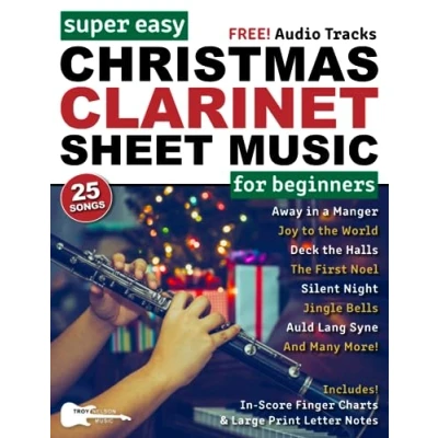 Super Easy Christmas Clarinet Sheet Music for Beginners: 25 Popular Songs with Big Letter Notes, In Score Finger Charts + Free Audio (Large Print Notes Music)
