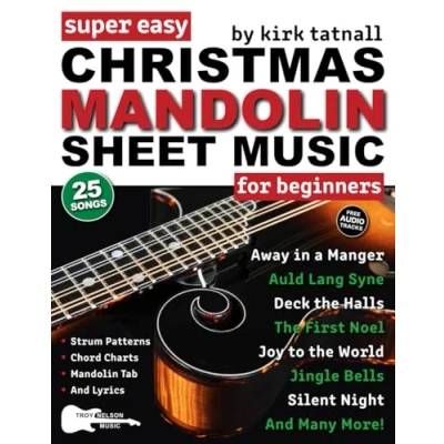 Super Easy Christmas Mandolin Sheet Music for Beginners: 25 Popular Songs with TAB, Chord Charts, Strum Patterns + FREE Audio (Large Print Letter Notes Music)