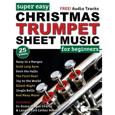 Super Easy Christmas Trumpet Sheet Music for Beginners: 25 Popular Carols with Big Letter Notes, In Score Finger Charts + FREE Audio! (Large Print Notes Music)