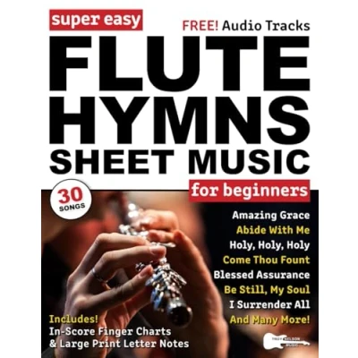 Super Easy Flute Hymns Sheet Music for Beginners: 30 Praise and Worship Songs with Big Letter Notes, In Score Finger Charts + Free Audio! (Large Print Notes Music)