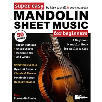 Super Easy Mandolin Sheet Music for Beginners: A Beginner Book Adults & Kids—50 Songs with TAB, Chord Charts, Strum Patterns + Free Audio! (Large Print Letter Notes Music)