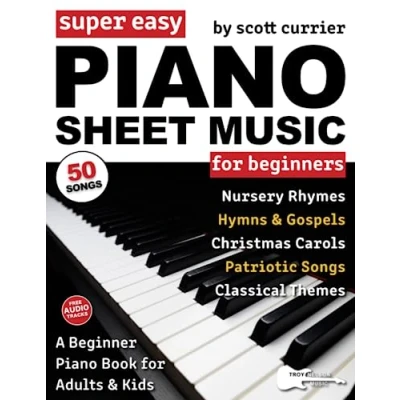 Super Easy Piano Sheet Music for Beginners: A Beginner Book Adults and Kids—50 Songs Include Nursery Rhymes, Christmas Carols, More! (Large Print Letter Notes Music)