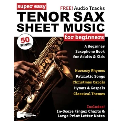 Super Easy Tenor Sax Sheet Music for Beginners: A Beginner Saxophone Book Adults & Kids—50 Songs with Big Letter Notes In Score Finger Charts (Large Print Music)