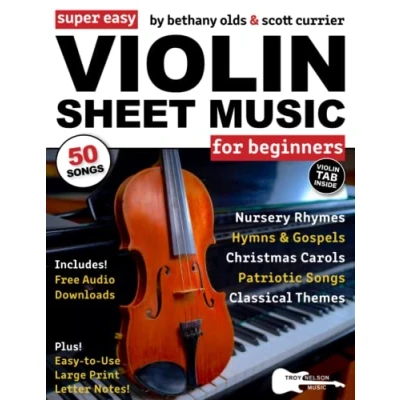 Super Easy Violin Sheet Music for Beginners: 50 Songs in X Large Notes and TAB (+ Free Audio)—Nursery Rhymes, Christmas Carols, More! (Large Print Letter Music)