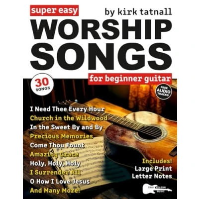 Super Easy Worship Songs for Beginner Guitar: 30 Hymns and Gospels in Big Letter Notes Guitar Tab—Amazing Grace, Holy, More (Large Print Sheet Music)