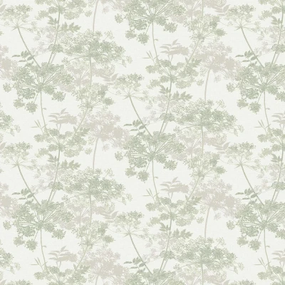WallpaperDirectA lightly textured wallpaper with a stunning all over cow parsley design. Shown here in the green colourway with gloss brown detail..