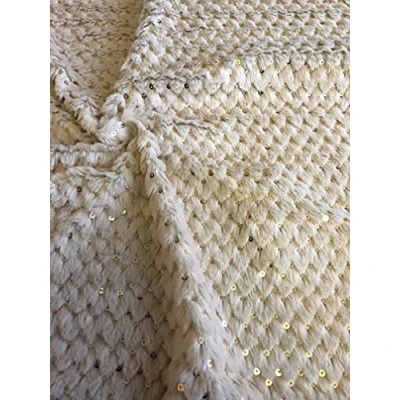 Super Luxury Faux Fur Fabric Material Cream Sequins, 1Mtr 150cm x 100cm