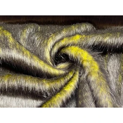 Super Luxury Faux Fur Fabric Material Yellow with Dark Grey Frost 1MTR
