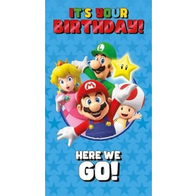 OFFICIAL SUPER MARIO BROS DESIGN: Features Mario, Luigi, Princess Peach and Toad in bright, action-packed artwork that fans of the iconic Nintendo game will love BIRTHDAY CELEBRATION CARD: With the fun messages “It’s Your Birthday!” and “Here We Go!” on the front, this card is perfect for an exciting birthday celebration QUALITY CARD STOCK: Printed on sturdy, high-quality card with a smooth finish, providing plenty of space inside for a personal handwritten message PERFECT FOR GAMING FANS: Ideal for Super Mario lovers of all ages, especially children who enjoy classic Nintendo adventures ENVELOPE INCLUDED: Supplied with a suitable sized envelope, ready for gifting or posting