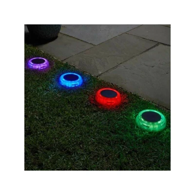 General description This four-pack of Smart Garden DecorDisk lights offers a wire-free solution for illuminating your outdoor spaces. With the ability to switch between bright white and multi-colour light, these versatile lights are ideal for borders, paths, driveways, and entrances. They can also enhance your decking area, providing a vibrant atmosphere. Technical specifications Number of lights: 4 LEDs per disk: 8 Installation Simple to install using ground spikes Easy to position and reposition as needed