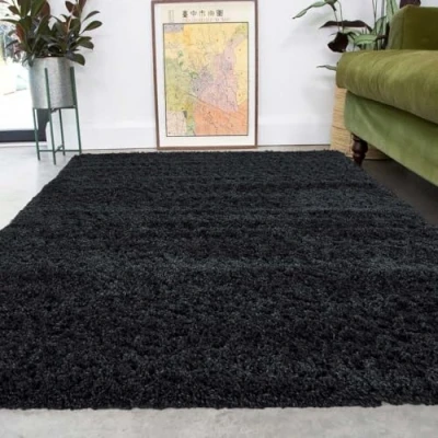 [SOFT COMFORT] Invite comfort indoors with dark charcoal tones- this dynamic , hard-wearing rug adds warmth to any room in the house- from the bedroom, bathroom, hallway, dining room, kitchen or your children's nursery. [NON-SHED] This shaggy statement piece is made from high-quality 100% polypropylene, meaning that it is inherently stain-resistant. This fluffy, shaggy carpet has been designed in a way to be extremely comfortable, durable and long lasting; meaning less time worrying about shedding and more time enjoying using your new built-to-last rug. [CHOOSE YOUR SIZE] From extra small to large and runner rugs, we have a range of different size options to choose from which makes choosing your perfect product super easy. [EASY MAINTENANCE] This soft material effortlessly repels stain and moisture, making cleaning a breeze while keeping the flawless look intact. [THICK PILE] 4.5mm thick pile- one of our shaggiest rugs yet. Great quality at an affordable price. Super soft and kid-friendly.
