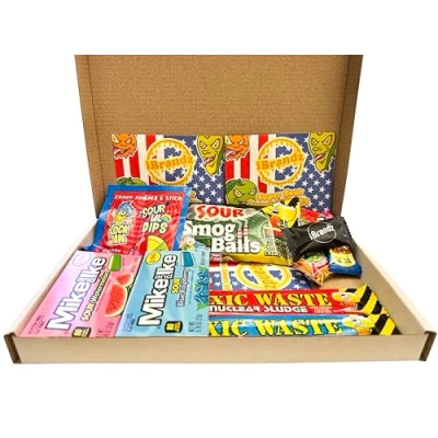 EXTREME SOUR SWEET HAMPER: Our super sour sweets bundle makes this one of the best value super sour sweets gift box around which includes sour American sweets as well as sour candy from around the world and UK. INCLUDES: Sour sweet box includes Toxic waste sour candy, Extreme sour candy, Toxic Waste smog balls, Super Sour Gel, Toxic Waste nuclear sludge, Chupa Chups center shocks, ibrandz mint, Mike and Ike Sour Watermelon Candy. PERFECT GIFT BOXES: Christmas, Birthdays, Easter, Halloween, Valentine's, Father's Day, Mother's Day, Thank You, Anniversaries, Weddings, Congratulations,. A perfect gift for him or for her or as a kids gift box. CAN YOUR TONGUE TAKE THE SOUR CHALLENGE: This juicy sour American sweet box not only contain sweets from the USA but around the world and UK to test you taste buds like toxic waste sour sweets are included in this sweet bundle. Availability: On very rare occasions we may have to substitute items due to availability. But please be assured the substitute will be of equal or greater value. We aim for our big sweet box to be the best sour American candy hamper.