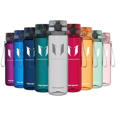 ➤ THE BETTER BOTTLE - What is quality? For us at Super Sparrow, excellence comes from the details, BPA-free Tritan Copolyester, and premium craftsmanship. That's what makes up our superior Sports Water Bottle. Our quality paired with our proactive service attitude makes us the choice for premium plastic water bottles! ➤ BPA-FREE TRITAN PLASTIC - Our bottles are made from Toxin Free US imported Tritan Co-polyester plastic that is SAFE for your body and environmentally friendly. No more worrying about harmful chemicals such as BPA affecting your health, which are present in many water bottles. If you are looking for a bottle that is durable and safe, it's the right choice for you! ➤ PREMIUM QUALITY DESIGN AND FUNCTIONALITY - Unlike dull, off-the-shelf water bottles, we designed the Super Sparrow bottle to look and function better than any other water bottle! It is ergonomically shaped to make one-handed use a breeze, with a tough carry strap and a special reflective frosted casing that reacts uniquely to your environment. It is both stylish and convenient to use, and each bottle comes in a gift box for a great present! ➤ DURABLE AND EASY TO USE - This is where our premium design shines! Super Sparrow 32-ounce, 1000 ml bottles are tough, durable, and resistant to impact. The special spill-proof top swings open with a one-handed push of a button! An air hole placed on the lid ensures a fast flow of water with effortless drinking. And when you're done with our workout, button lock to avoid accidental spills. ➤ CUSTOMER AND PRODUCT SATISFACTION: Customers stand behind Super Sparrow products and have great faith in our products. Super Sparrow is committed to high standards of durable and robust materials. Super Sparrow products have a lifetime warranty against manufacturing defects