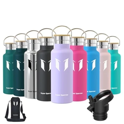 Amazon INSULATED STAINLESS STEEL WATER BOTTLE- No longer relying on cheap plastic water bottles that split and crack, our 18/8 stainless steel water bottle is manufactured from durable materials, for a bottle that can withstand your tough workouts! It can keep hot liquid warm for up to hours, and keep cold drinks chilled for up to 12 hours also ensures no sweating or condensation. Perfectly suited for Running, Gym, Yoga, office, Outdoors, and Camping. 2 INTERCHANGEABLE CAPS - (1) Sport Cap effortlessly delivers a high flow rate that makes it easy to drink from your bottle without removing the lid (2) Bamboo Cap enables you to carry it with ease or attach it to a backpack, for that it is convenient to take it with you on hikes, trekking, camping, or to the gym! BPA-FREE MATERIAL - The cheaper plastic water bottles leech chemicals and alter the taste of your drink when refilled. The Super Sparrow stainless steel water bottle is manufactured using premium 18/8 stainless steel BPA-free, so you don't have to worry about it being safe. PREMIUM QUALITY DESIGN AND FUNCTIONALITY - We designed the Super Sparrow water bottle to look and function differently from other Stainless Steel Water Bottles! It is ergonomically shaped to make one-handed use a breeze, perfect for hardwearing use. Customer-Oriented: We believe that the Super Sparrow stainless steel bottle stands out in the market for its quality and performance. We offer comprehensive after-sales support for all Super Sparrow products to ensure satisfaction and resolve any manufacturing defects.