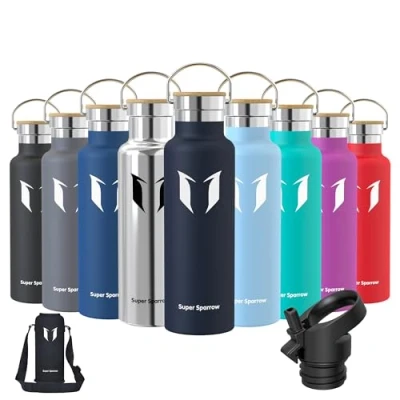INSULATED STAINLESS STEEL WATER BOTTLE- No longer relying on cheap plastic water bottles that split and crack, our 18/8 stainless steel water bottle is manufactured from durable materials, for a bottle that can withstand your tough workouts! It can keep hot liquid warm for up to hours, and keep cold drinks chilled for up to 12 hours also ensures no sweating or condensation. Perfectly suited for Running, Gym, Yoga, office, Outdoors, and Camping. 2 INTERCHANGEABLE CAPS - (1) Sport Cap effortlessly delivers a high flow rate that makes it easy to drink from your bottle without removing the lid (2) Bamboo Cap enables you to carry it with ease or attach it to a backpack, for that it is convenient to take it with you on hikes, trekking, camping, or to the gym! BPA-FREE MATERIAL - The cheaper plastic water bottles leech chemicals and alter the taste of your drink when refilled. The Super Sparrow stainless steel water bottle is manufactured using premium 18/8 stainless steel BPA-free, so you don't have to worry about it being safe. PREMIUM QUALITY DESIGN AND FUNCTIONALITY - We designed the Super Sparrow water bottle to look and function differently from other Stainless Steel Water Bottles! It is ergonomically shaped to make one-handed use a breeze, perfect for hardwearing use. Customer-Oriented: We believe that the Super Sparrow stainless steel bottle stands out in the market for its quality and performance. We offer comprehensive after-sales support for all Super Sparrow products to ensure satisfaction and resolve any manufacturing defects.