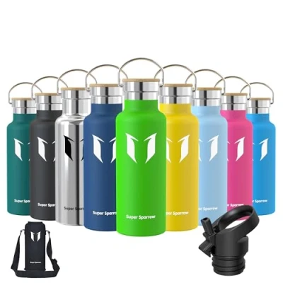 INSULATED STAINLESS STEEL WATER BOTTLE- No longer relying on cheap plastic water bottles that split and crack, our 18/8 stainless steel water bottle is manufactured from durable materials, for a bottle that can withstand your tough workouts! It can keep hot liquid warm for up to hours, and keep cold drinks chilled for up to 12 hours also ensures no sweating or condensation. Perfectly suited for Running, Gym, Yoga, office, Outdoors, and Camping. 2 INTERCHANGEABLE CAPS - (1) Sport Cap effortlessly delivers a high flow rate that makes it easy to drink from your bottle without removing the lid (2) Bamboo Cap enables you to carry it with ease or attach it to a backpack, for that it is convenient to take it with you on hikes, trekking, camping, or to the gym! BPA-FREE MATERIAL - The cheaper plastic water bottles leech chemicals and alter the taste of your drink when refilled. The Super Sparrow stainless steel water bottle is manufactured using premium 18/8 stainless steel BPA-free, so you don't have to worry about it being safe. PREMIUM QUALITY DESIGN AND FUNCTIONALITY - We designed the Super Sparrow water bottle to look and function differently from other Stainless Steel Water Bottles! It is ergonomically shaped to make one-handed use a breeze, perfect for hardwearing use. Customer-Oriented: We believe that the Super Sparrow stainless steel bottle stands out in the market for its quality and performance. We offer comprehensive after-sales support for all Super Sparrow products to ensure satisfaction and resolve any manufacturing defects.