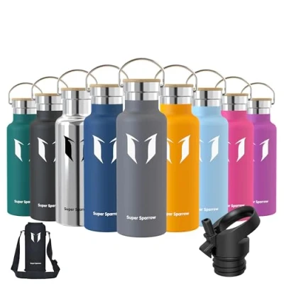 INSULATED STAINLESS STEEL WATER BOTTLE- No longer relying on cheap plastic water bottles that split and crack, our 18/8 stainless steel water bottle is manufactured from durable materials, for a bottle that can withstand your tough workouts! It can keep hot liquid warm for up to hours, and keep cold drinks chilled for up to 12 hours also ensures no sweating or condensation. Perfectly suited for Running, Gym, Yoga, office, Outdoors, and Camping. 2 INTERCHANGEABLE CAPS - (1) Sport Cap effortlessly delivers a high flow rate that makes it easy to drink from your bottle without removing the lid (2) Bamboo Cap enables you to carry it with ease or attach it to a backpack, for that it is convenient to take it with you on hikes, trekking, camping, or to the gym! BPA-FREE MATERIAL - The cheaper plastic water bottles leech chemicals and alter the taste of your drink when refilled. The Super Sparrow stainless steel water bottle is manufactured using premium 18/8 stainless steel BPA-free, so you don't have to worry about it being safe. PREMIUM QUALITY DESIGN AND FUNCTIONALITY - We designed the Super Sparrow water bottle to look and function differently from other Stainless Steel Water Bottles! It is ergonomically shaped to make one-handed use a breeze, perfect for hardwearing use. Customer-Oriented: We believe that the Super Sparrow stainless steel bottle stands out in the market for its quality and performance. We offer comprehensive after-sales support for all Super Sparrow products to ensure satisfaction and resolve any manufacturing defects.