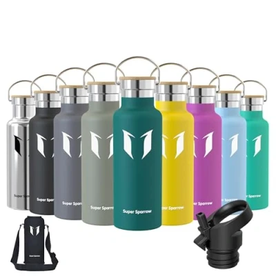 INSULATED STAINLESS STEEL WATER BOTTLE- No longer relying on cheap plastic water bottles that split and crack, our 18/8 stainless steel water bottle is manufactured from durable materials, for a bottle that can withstand your tough workouts! It can keep hot liquid warm for up to hours, and keep cold drinks chilled for up to 12 hours also ensures no sweating or condensation. Perfectly suited for Running, Gym, Yoga, office, Outdoors, and Camping. 2 INTERCHANGEABLE CAPS - (1) Sport Cap effortlessly delivers a high flow rate that makes it easy to drink from your bottle without removing the lid (2) Bamboo Cap enables you to carry it with ease or attach it to a backpack, for that it is convenient to take it with you on hikes, trekking, camping, or to the gym! BPA-FREE MATERIAL - The cheaper plastic water bottles leech chemicals and alter the taste of your drink when refilled. The Super Sparrow stainless steel water bottle is manufactured using premium 18/8 stainless steel BPA-free, so you don't have to worry about it being safe. PREMIUM QUALITY DESIGN AND FUNCTIONALITY - We designed the Super Sparrow water bottle to look and function differently from other Stainless Steel Water Bottles! It is ergonomically shaped to make one-handed use a breeze, perfect for hardwearing use. Customer-Oriented: We believe that the Super Sparrow stainless steel bottle stands out in the market for its quality and performance. We offer comprehensive after-sales support for all Super Sparrow products to ensure satisfaction and resolve any manufacturing defects.