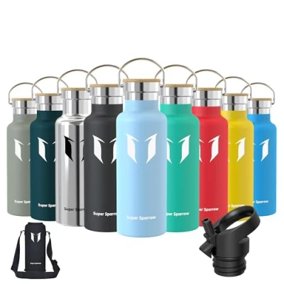 INSULATED STAINLESS STEEL WATER BOTTLE- No longer relying on cheap plastic water bottles that split and crack, our 18/8 stainless steel water bottle is manufactured from durable materials, for a bottle that can withstand your tough workouts! It can keep hot liquid warm for up to hours, and keep cold drinks chilled for up to 12 hours also ensures no sweating or condensation. Perfectly suited for Running, Gym, Yoga, office, Outdoors, and Camping. 2 INTERCHANGEABLE CAPS - (1) Sport Cap effortlessly delivers a high flow rate that makes it easy to drink from your bottle without removing the lid (2) Bamboo Cap enables you to carry it with ease or attach it to a backpack, for that it is convenient to take it with you on hikes, trekking, camping, or to the gym! BPA-FREE MATERIAL - The cheaper plastic water bottles leech chemicals and alter the taste of your drink when refilled. The Super Sparrow stainless steel water bottle is manufactured using premium 18/8 stainless steel BPA-free, so you don't have to worry about it being safe. PREMIUM QUALITY DESIGN AND FUNCTIONALITY - We designed the Super Sparrow water bottle to look and function differently from other Stainless Steel Water Bottles! It is ergonomically shaped to make one-handed use a breeze, perfect for hardwearing use. Customer-Oriented: We believe that the Super Sparrow stainless steel bottle stands out in the market for its quality and performance. We offer comprehensive after-sales support for all Super Sparrow products to ensure satisfaction and resolve any manufacturing defects.