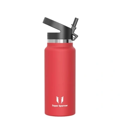 Super Sparrow Water Bottle Insulated 1000ml Wide Mouth Metal SwivelSip Flask BPA Free, Leak Proof Ergonomic Straw Bottles for Work, Gym, Travel, Sports