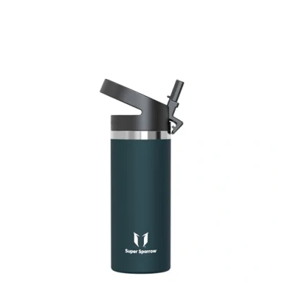 Super Sparrow Water Bottle Insulated 500ml Wide Mouth Metal SwivelSip Flask BPA Free, Leak Proof Ergonomic Straw Bottles for Work, Gym, Travel, Sports